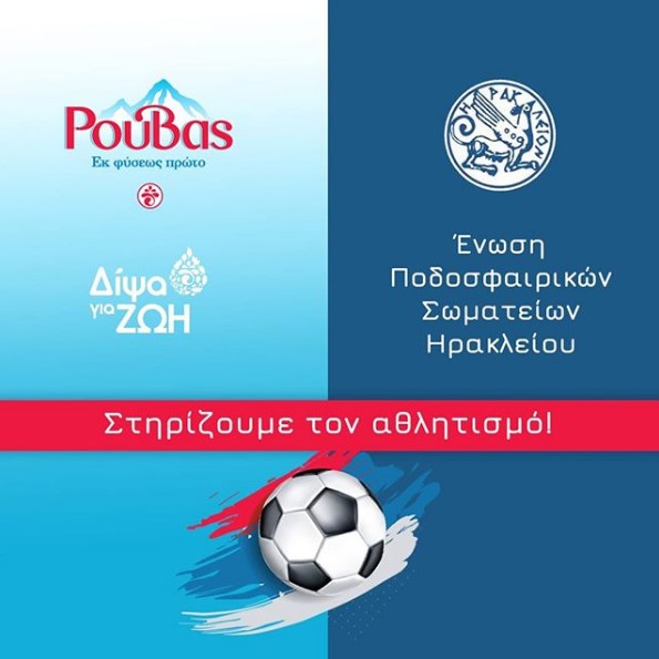 Με επίκεντρο την υπεύθυνη Εταιρική Κοινωνική Ευθύνη και μέσα από το πρόγραμμα «Δίψα για Ζωή», το νερό Ρούβας συμμετέχει ενεργά σε δράσεις που αφορούν τον αθλητισμό, τον πολιτισμό και τις φιλανθρωπίες. Αυτή τη φορά στηρίζουμε το ποδόσφαιρο του τόπου μας και όλα τα σωματεία της Ένωσης Ποδοσφαιρικών Σωματείων Ηρακλείου που αγωνίζονται στις διοργανώσεις της Ένωσης την περίοδο 2020-2021. Ακόμη, το νερό Ρούβας αναλαμβάνει επίσημος χορηγός στο Κύπελλο ΕΠΣΗ περιόδου 2020-2021 και η διοργάνωση θα έχει πλέον την ονομασία Κύπελλο ΕΠΣΗ «Νερό Ρούβας».