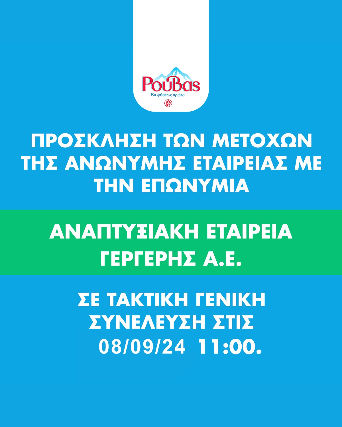 ΠΡΟΣΚΛΗΣΗ ΤΩΝ ΜΕΤΟΧΩΝ ΤΗΣ ΑΝΩΝΥΜΗΣ ΕΤΑΙΡΕΙΑΣ ΜΕ ΤΗΝ ΕΠΩΝΥΜΙΑ «ΑΝΑΠΤΥΞΙΑΚΗ ΕΤΑΙΡΕΙΑ ΓΕΡΓΕΡΗΣ Α.Ε.» ΣΕ ΤΑΚΤΙΚΗ ΓΕΝΙΚΗ ΣΥΝΕΛΕΥΣΗ.